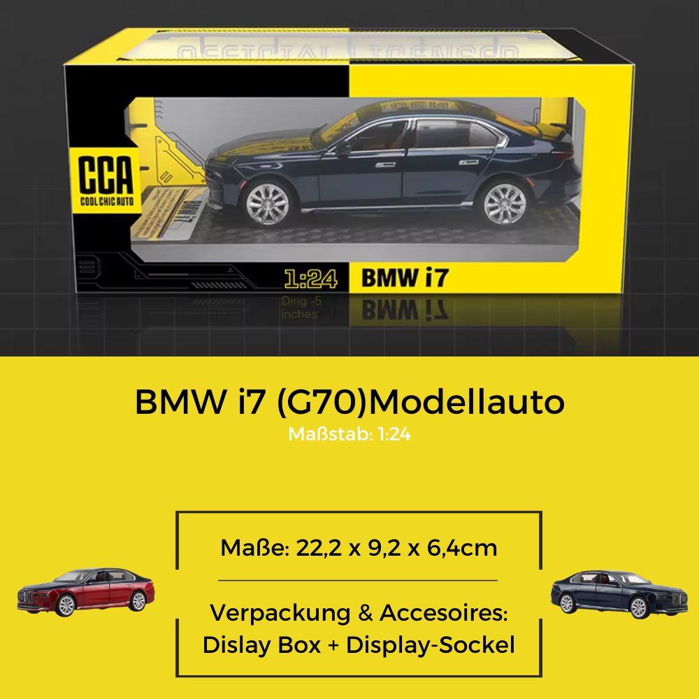 BMW i7 G70 Modellauto (1:24) | Sammler-Miniatur mit Displaybox, Deko, Geschenk
