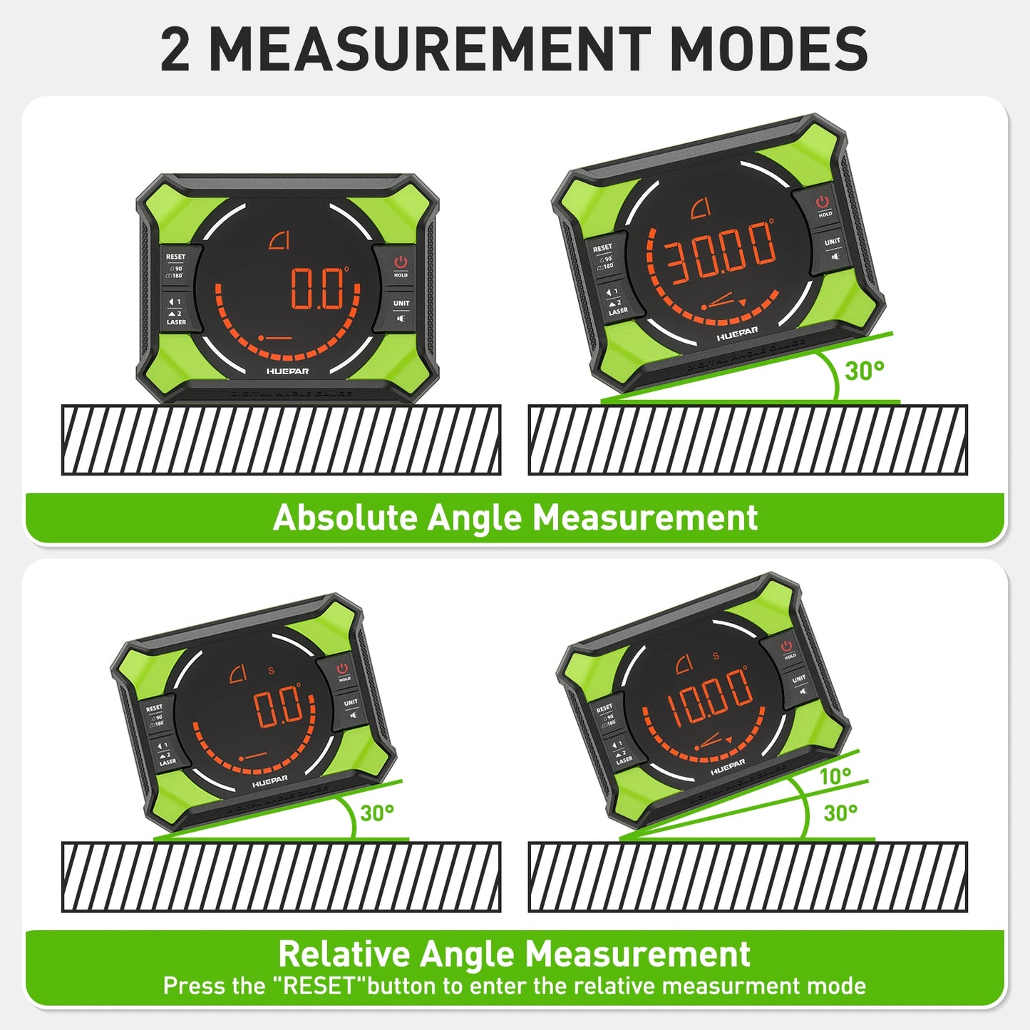 Huepar 3-in-1 Digitaler Winkelmesser mit Laser | LCD-Display & Magnetischer Neigungsmesser