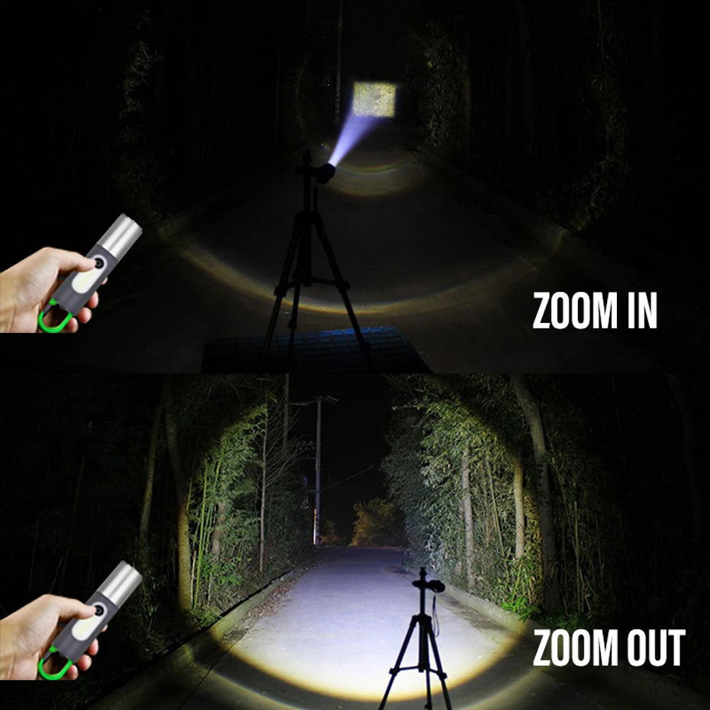 Diese kompakte und tragbare Mini Super-White Laser COB-Taschenlampe ist der ideale Begleiter für Camping, Wandern oder den Alltag. Dank ihrer starken Leuchtkraft und vielseitigen Funktionen bietet sie dir genau das Licht, das du brauchst, egal in welcher Situation.