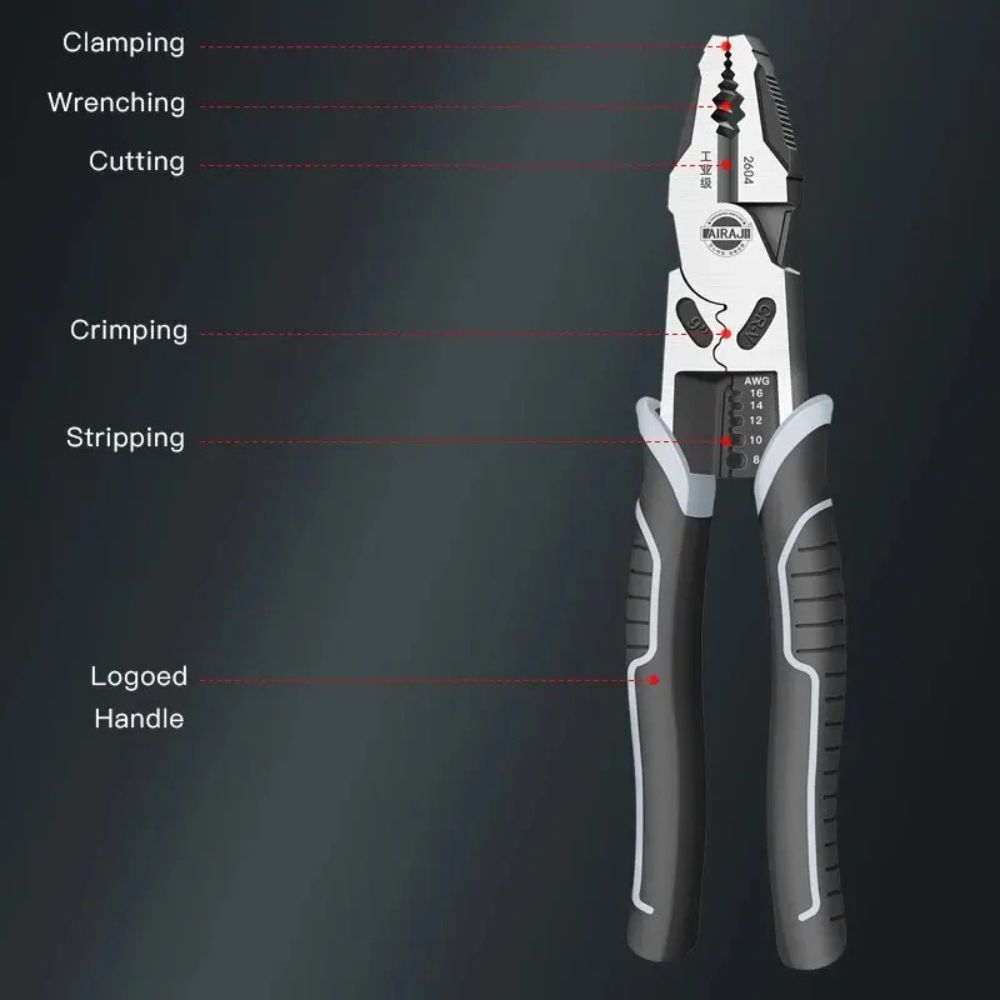 Multifunktionszangen (7"-9" Zoll) | Kombizange, Abisolierzange, Crimpzange, Seitenschneider, Drahtschneider (GIF2)