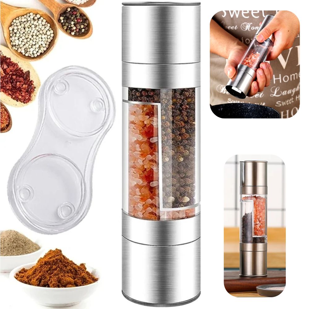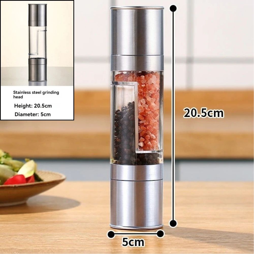 2-in-1 Salt, Pepper and Spice Mill made of Stainless Steel | Adjustable Ceramic Grinder