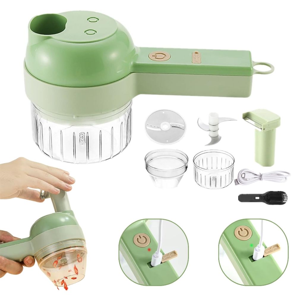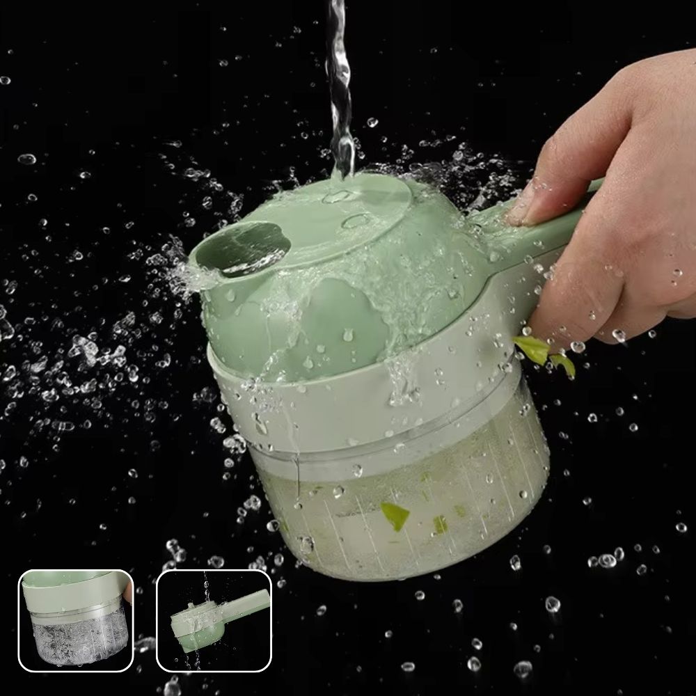 4-in-1 Wireless Electric Vegetable Cutter with USB Charging | Chopping, Slicing, Mixing and Peeling (GIF2)