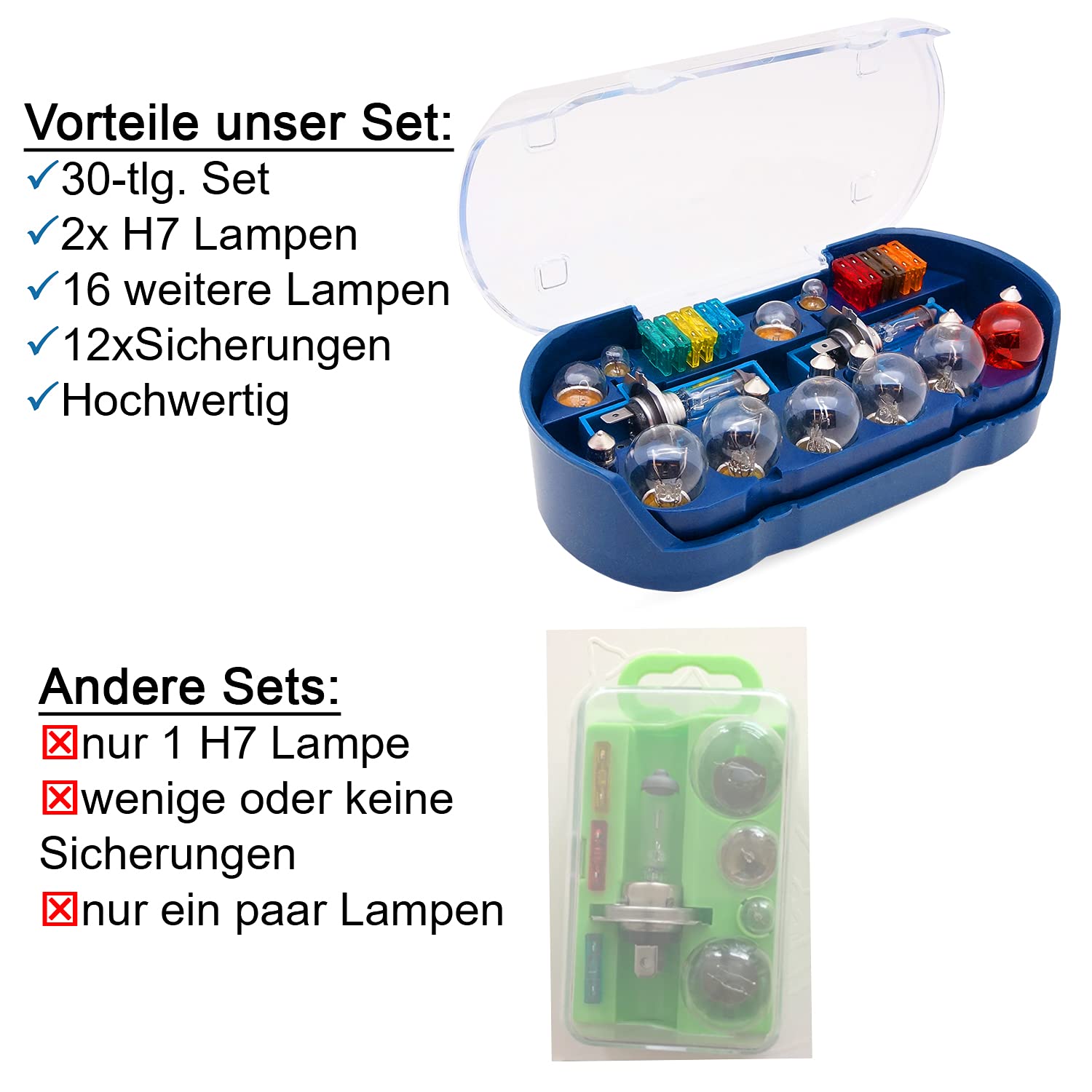 bemiX car replacement bulb set H7 30-piece with car fuses in storage box