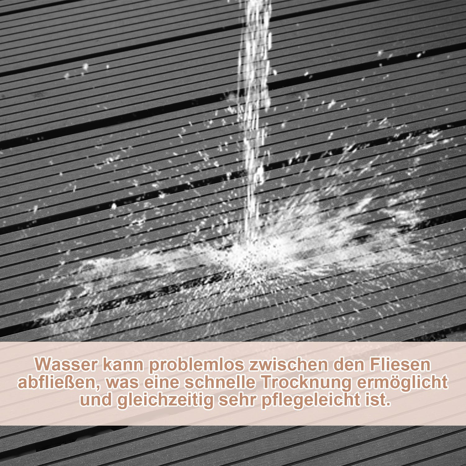 Set of 11 WPC patio tiles for 1m² (30x30cm): Balcony click tiles with drainage | Waterproof, corrosion-resistant