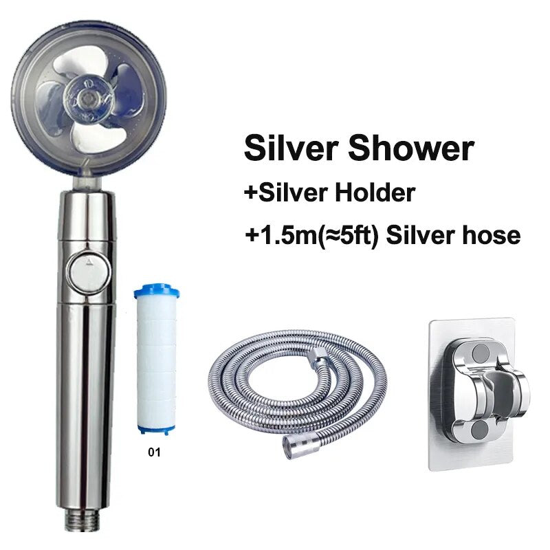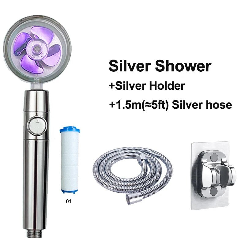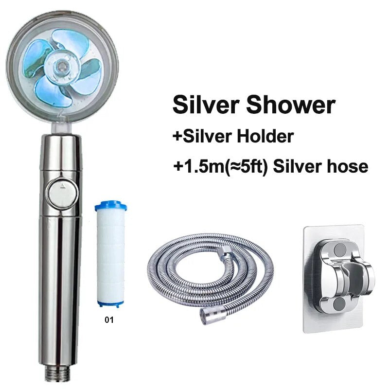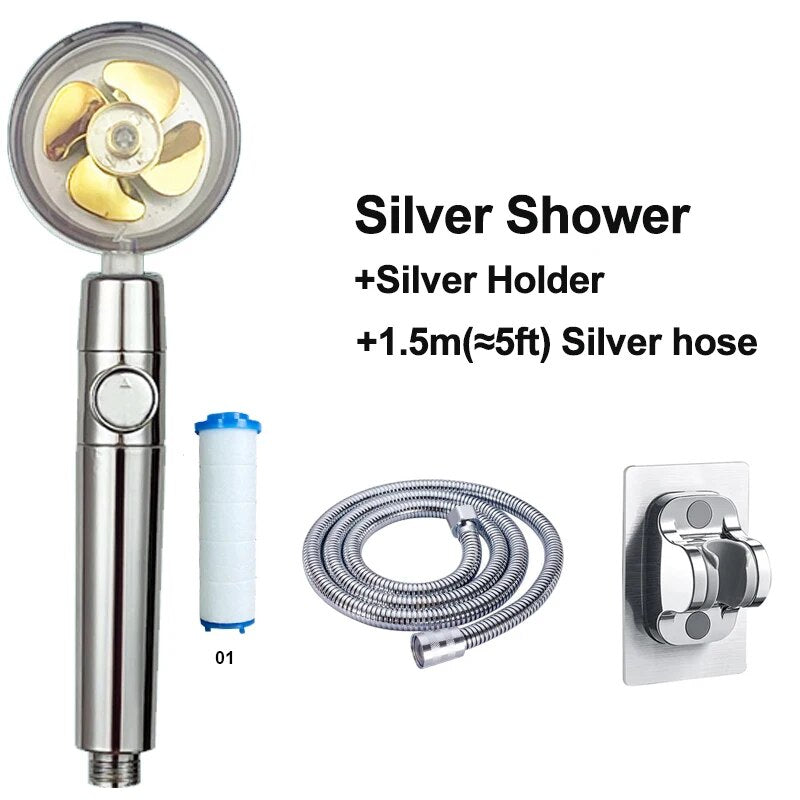 Propeller High-Pressure Shower Head with 360° Rotational Function, Filter, and Pause Switch for the Ultimate Shower Experience