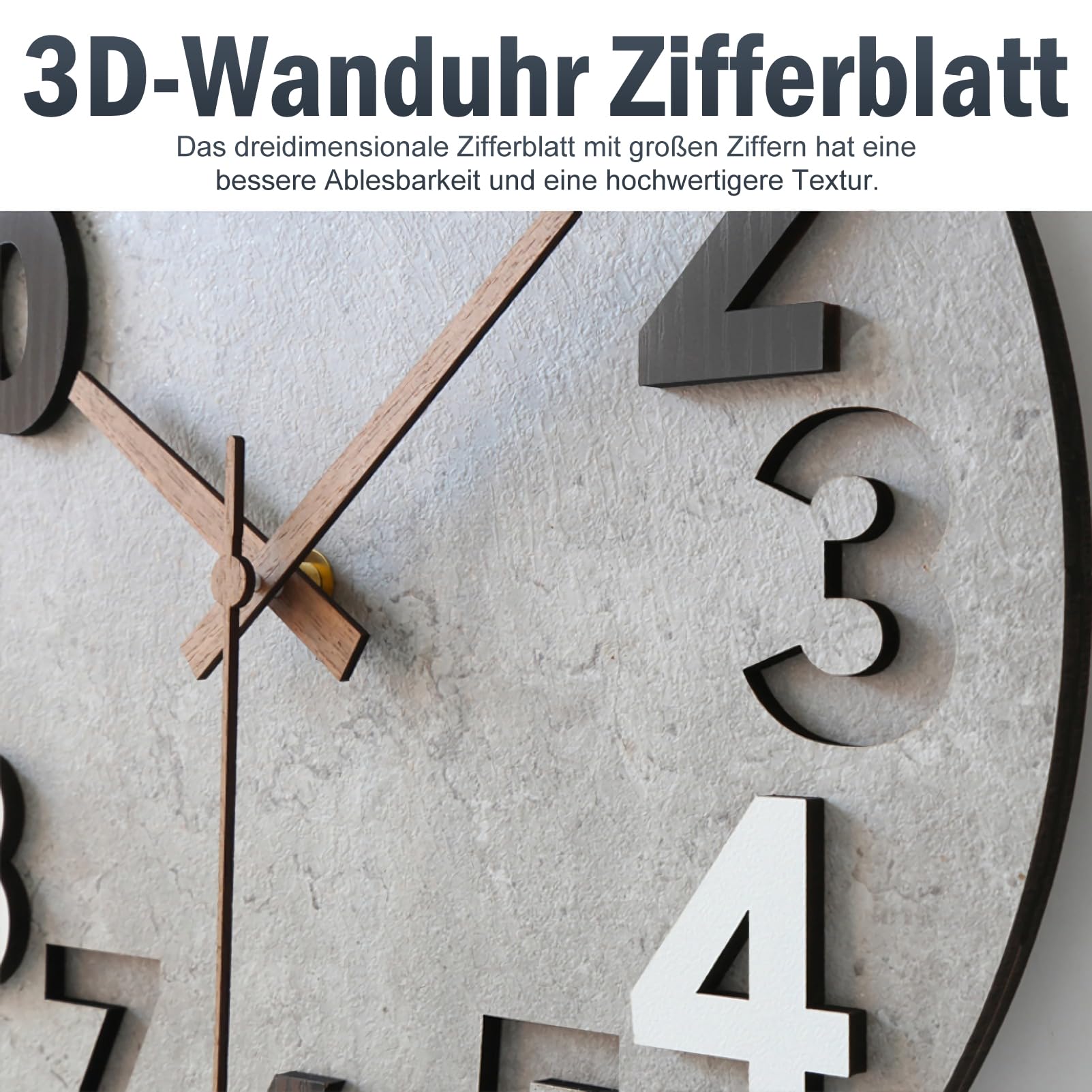 Stellarize Modern Wooden 3D Wall Clock (30cm) without ticking sounds for living room, kitchen, office