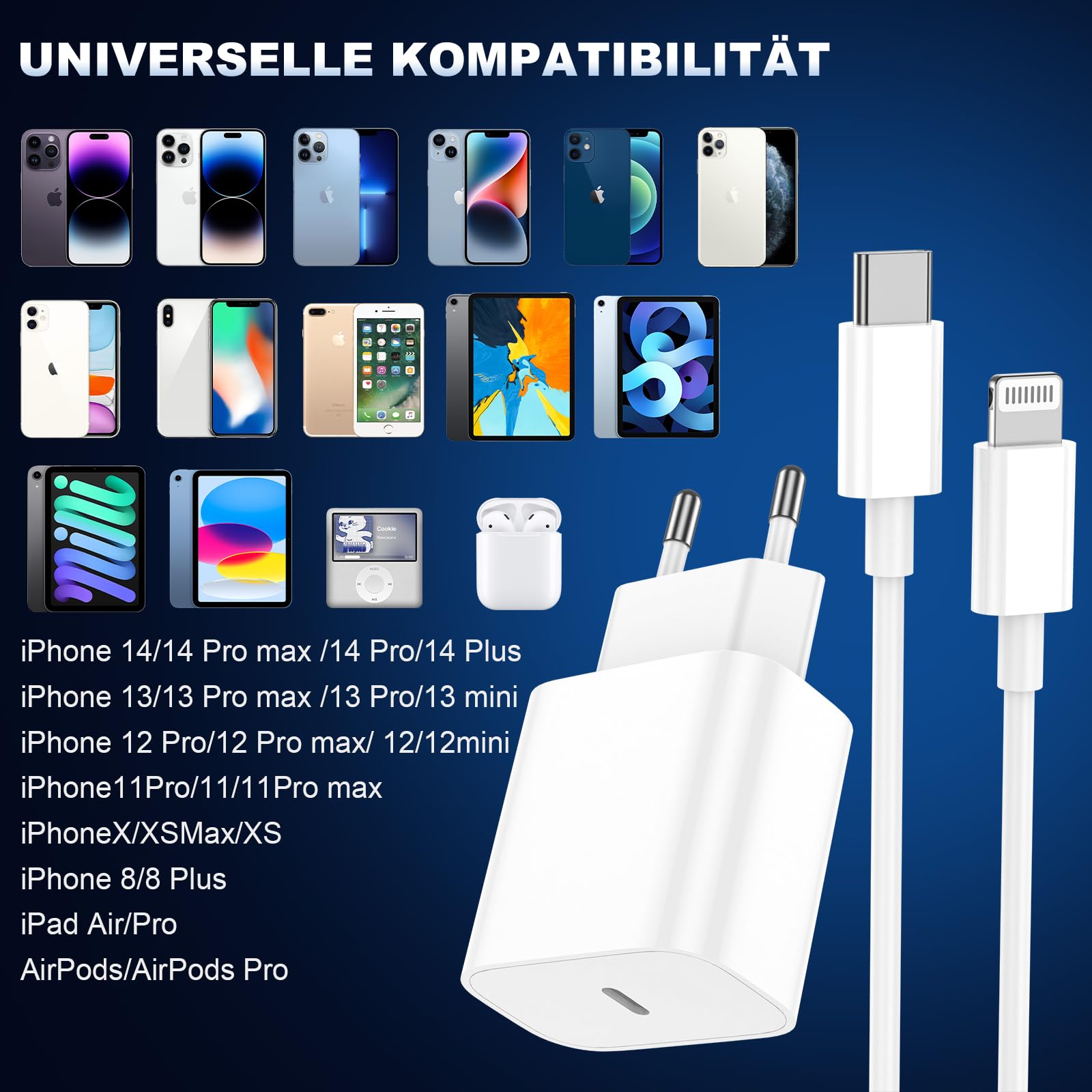 Leistungsstarkes iPhone-Ladegerät mit Schnellladefunktion, breiter Gerätekompatibilität und kompaktem Design - für sicheres und effizientes Laden zu jeder Zeit.