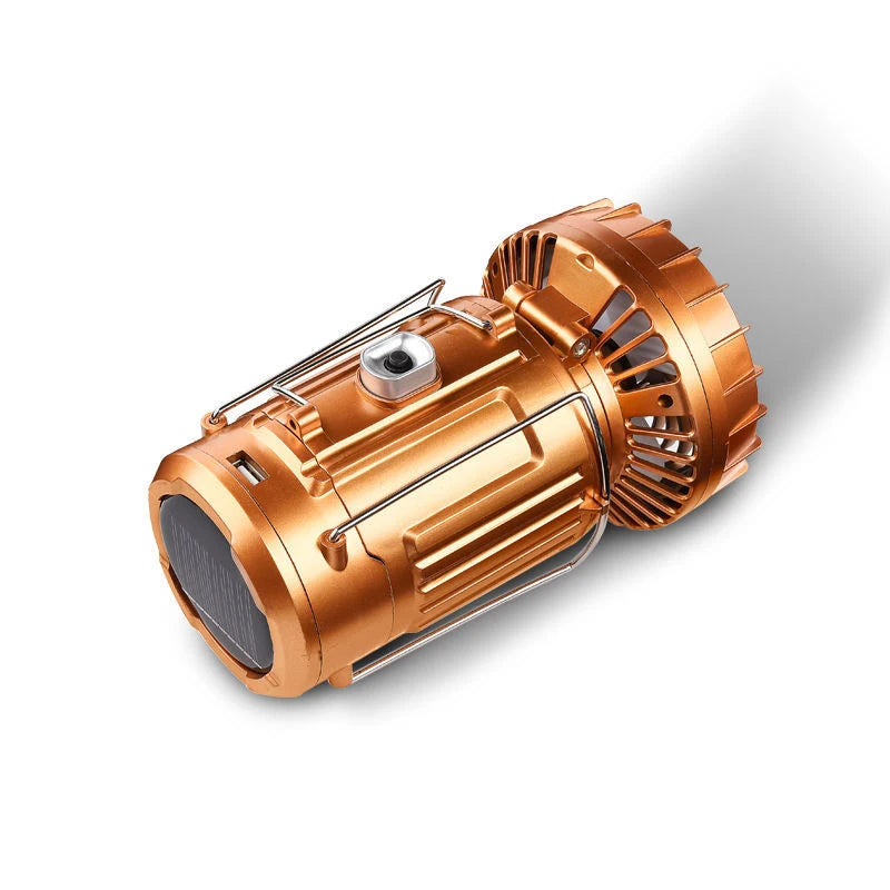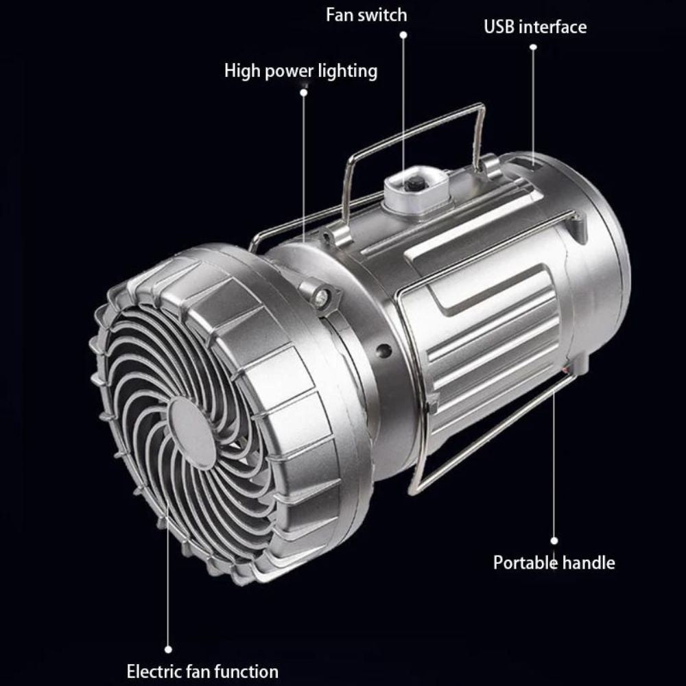 Cette lampe de camping solaire portable avec ventilateur intégré est parfaite pour toutes vos activités de plein air. Que ce soit en camping, en randonnée ou en cas d'urgence, restez allumé et connecté à tout moment.