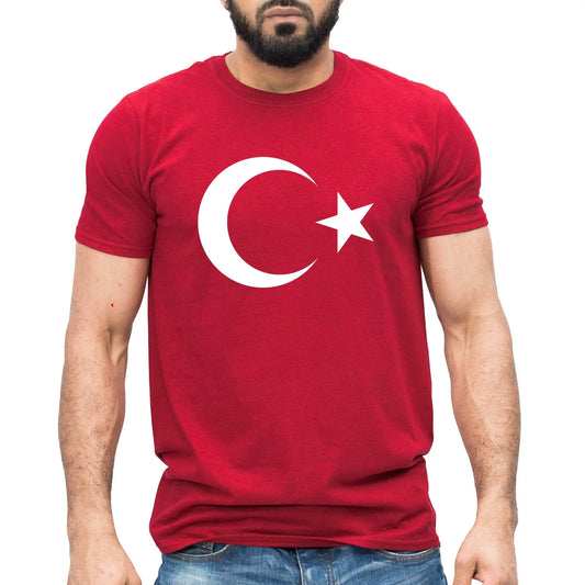 T-shirt décontracté à manches courtes avec drapeau turc (Rouge) | Conception d'étoile de nouvelle lune