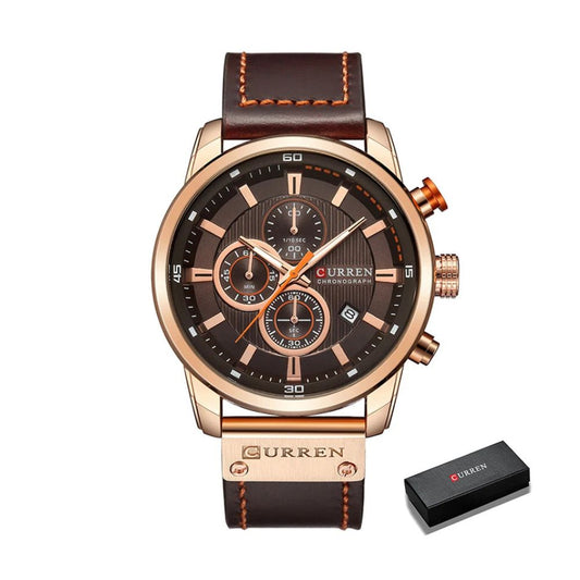 • Montre à quartz chronographe de luxe CURREN pour homme avec bracelet en cuir