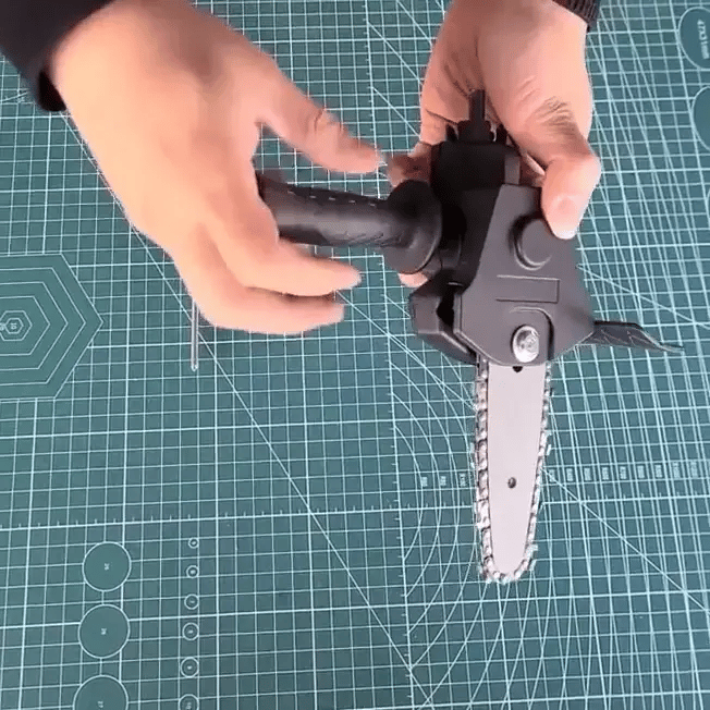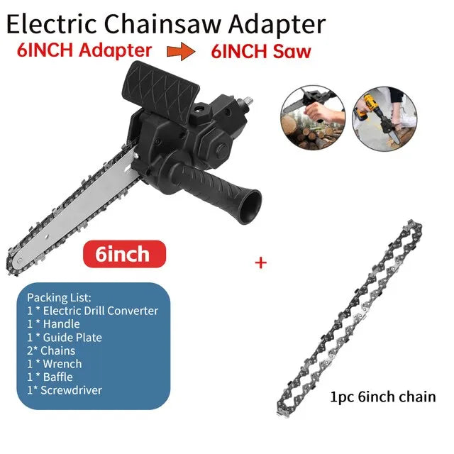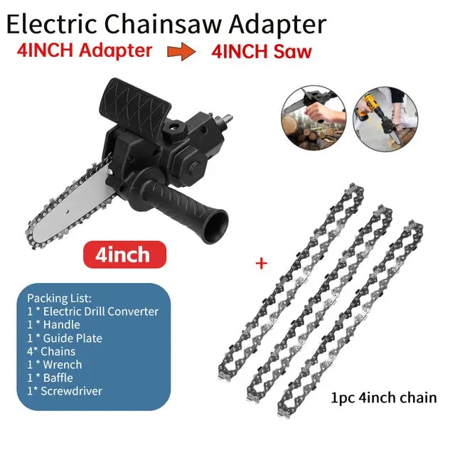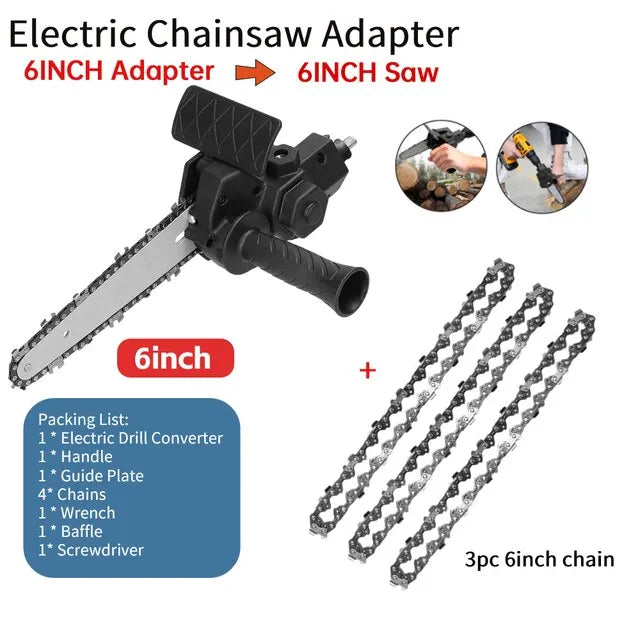 Kits de tête de conversion portables : cette perceuse électrique a été modifiée pour être utilisée comme outil adaptateur de tronçonneuse électrique, la rendant portable et facile à utiliser.