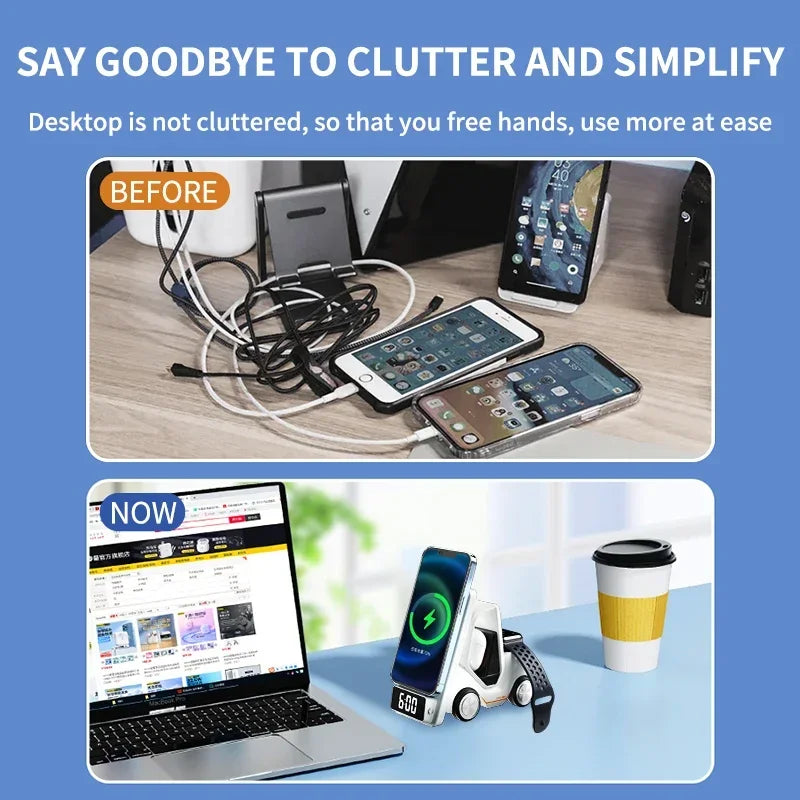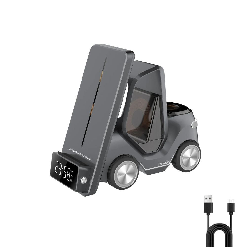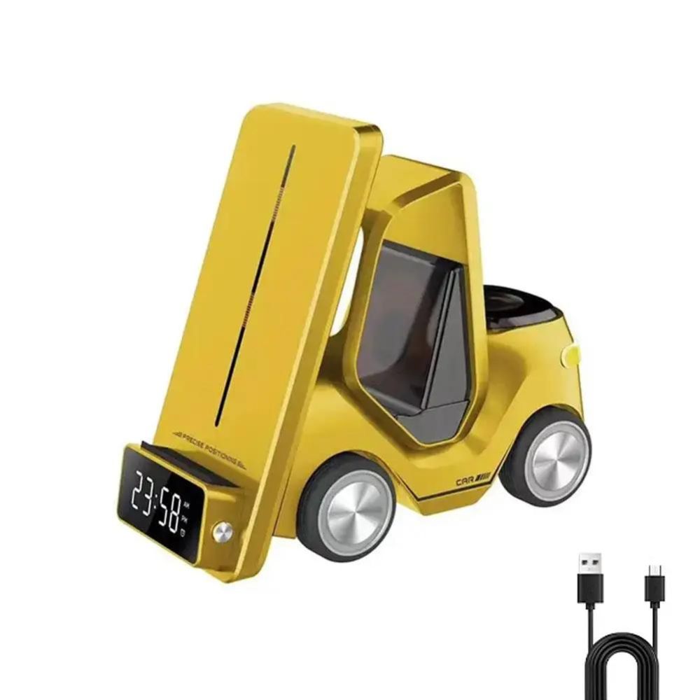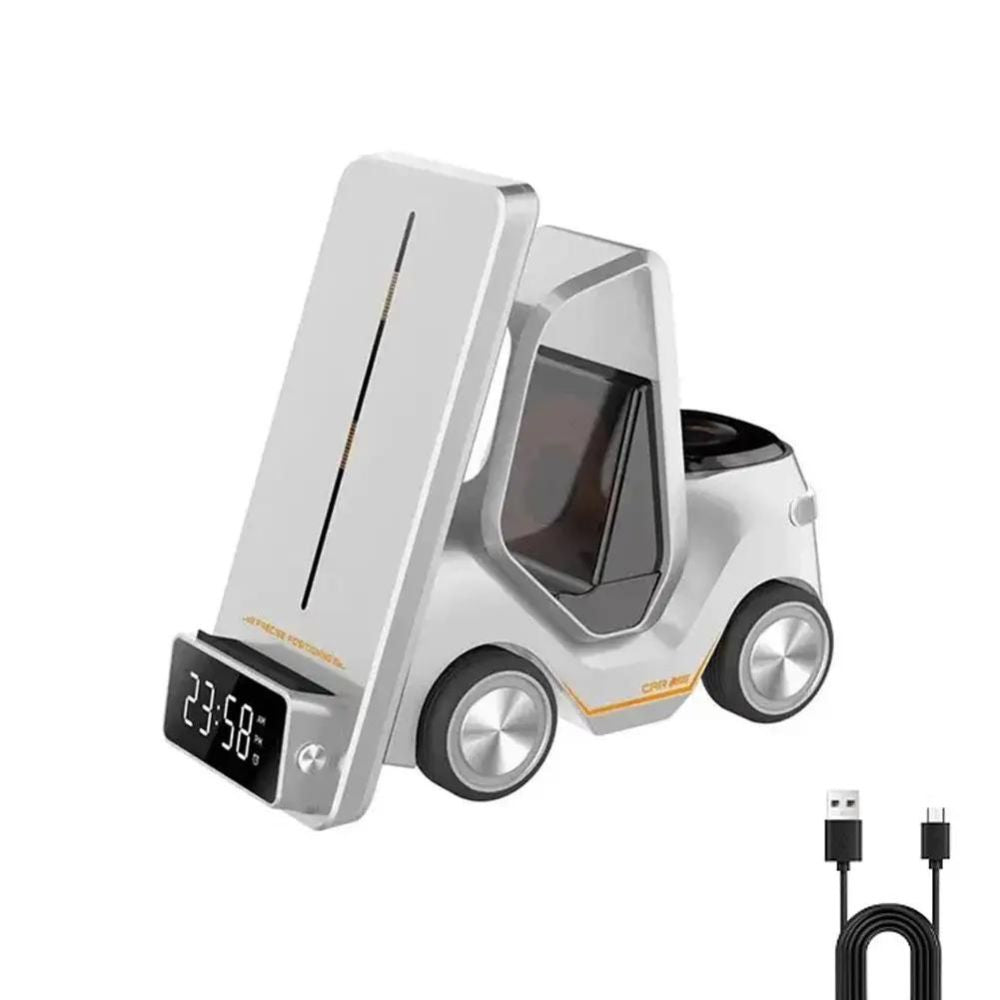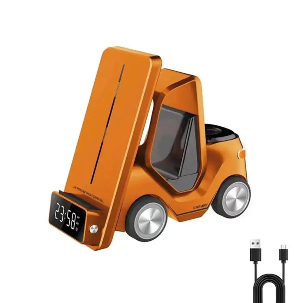Découvrez la station de recharge et d'alarme sans fil ultime 5-en-1 au design d'un chariot élévateur - le complément parfait à votre style de vie moderne.