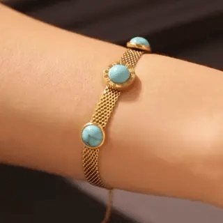 Bracelet en acier inoxydable et titane plaqué or avec pendentif turquoise | Bijoux de luxe pour femmes