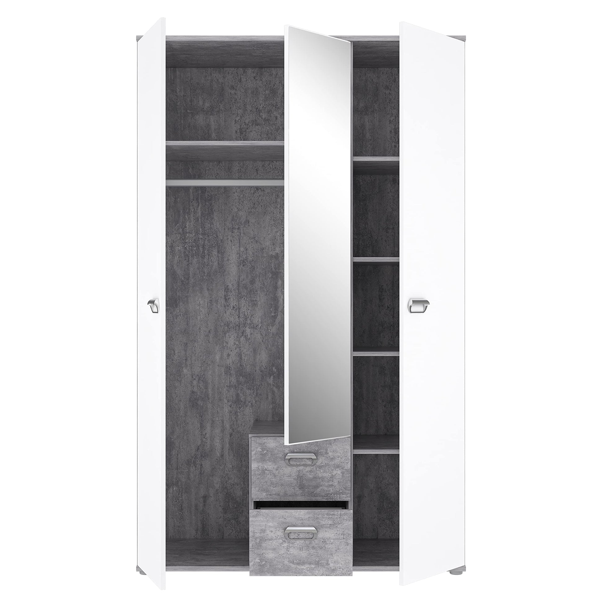 Kleiderschrank 'EMILY' mit Betonoptik und Spiegel: Lichtgrau mit Weiß (Modell: EMLS95-C251)