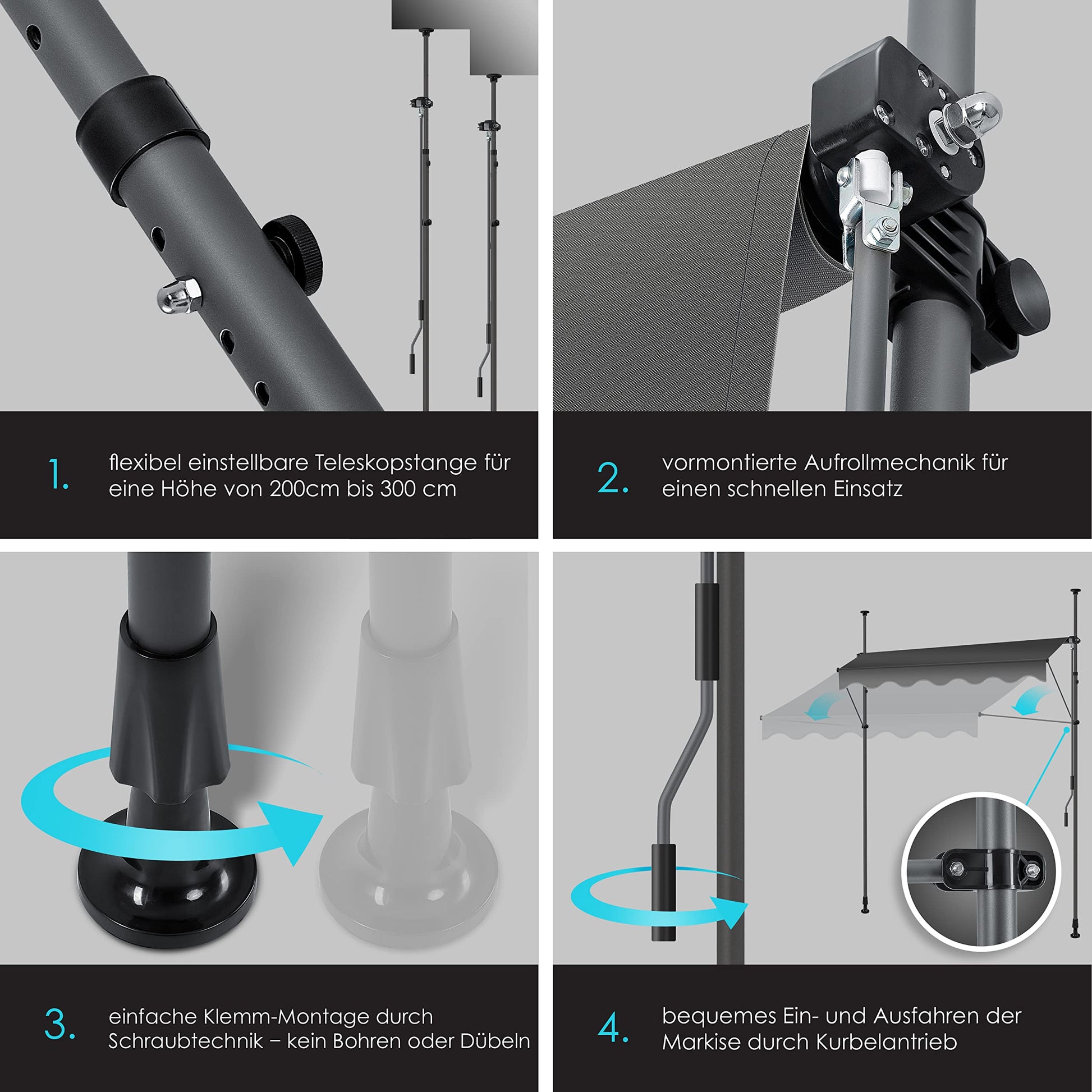 KESSER® Sonnenschutz Klemmmarkise für Balkon & etc. | Höhenverstellbar ohne Bohren (Anthrazit)
