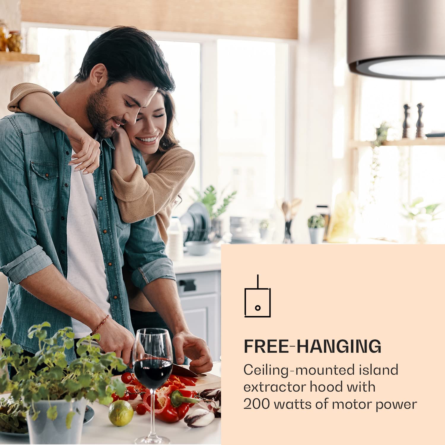 Klarstein Skyfall Smart Insel-Dunstabzugshaube (Gold): WLAN & App-Steuerung inkl. Aktivkohlefilter