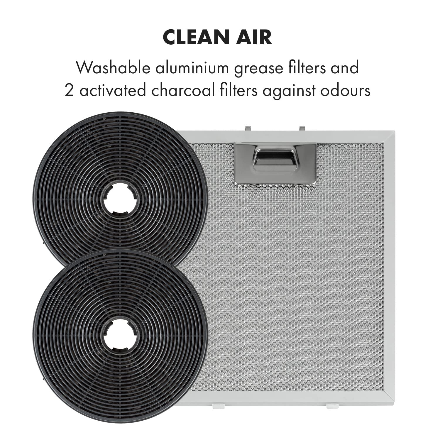 • Effiziente Filterung: Abwaschbarer Aluminium-Fettfilter & 2 Aktivkohlefilter inklusive