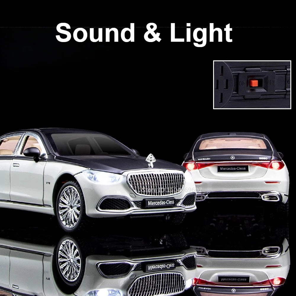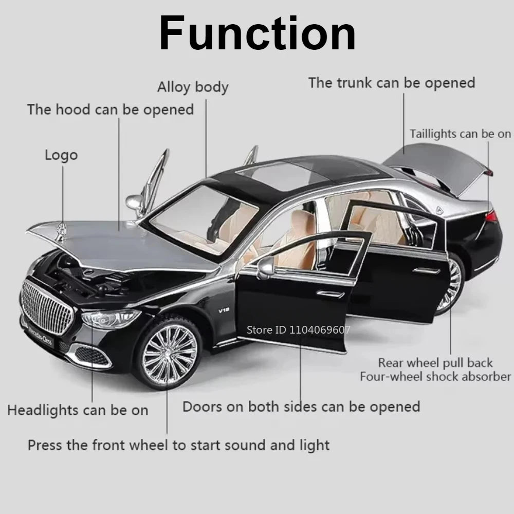 Modèle de voiture Maybach S680 (1:24) | Lumière, son, ouverture des portes, fonction pull-back, idée cadeau
