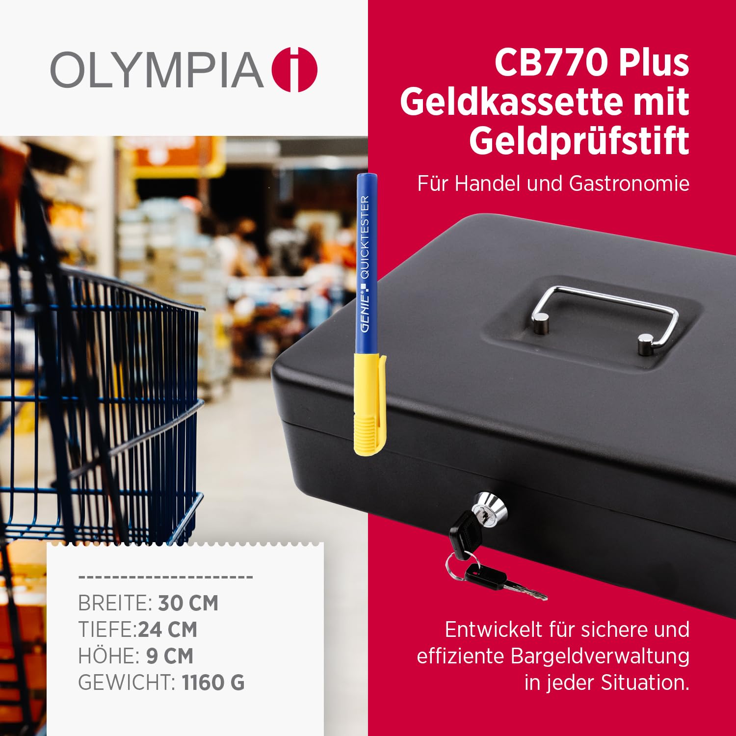 Olympia (6031 CB 770 Plus) Geldkassette: Abschließbar mit Schlüssel & Münzzählbrett inkl. Falschgeldprüfer