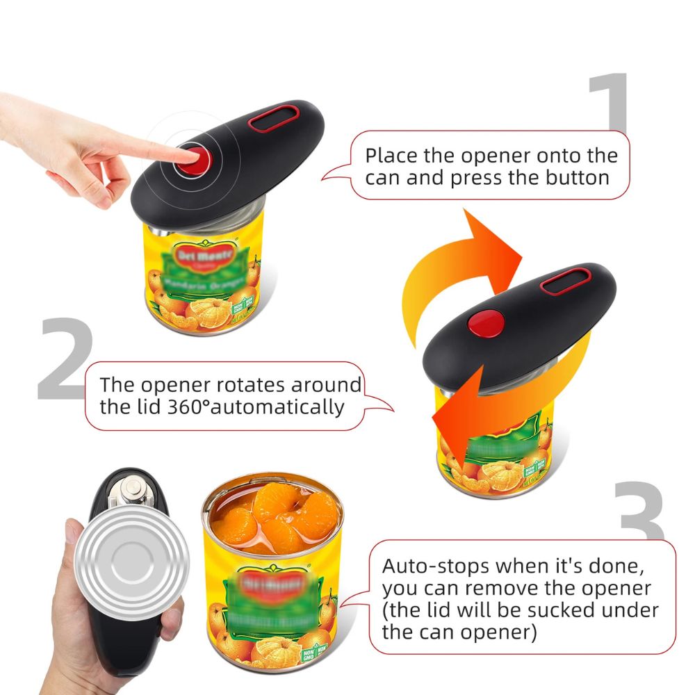 Manipulation pratique : d'une simple pression sur un bouton, l'ouvre-boîte électrique ouvre n'importe quelle boîte sans effort et s'arrête automatiquement après ouverture. Convient aux canettes de toutes tailles.