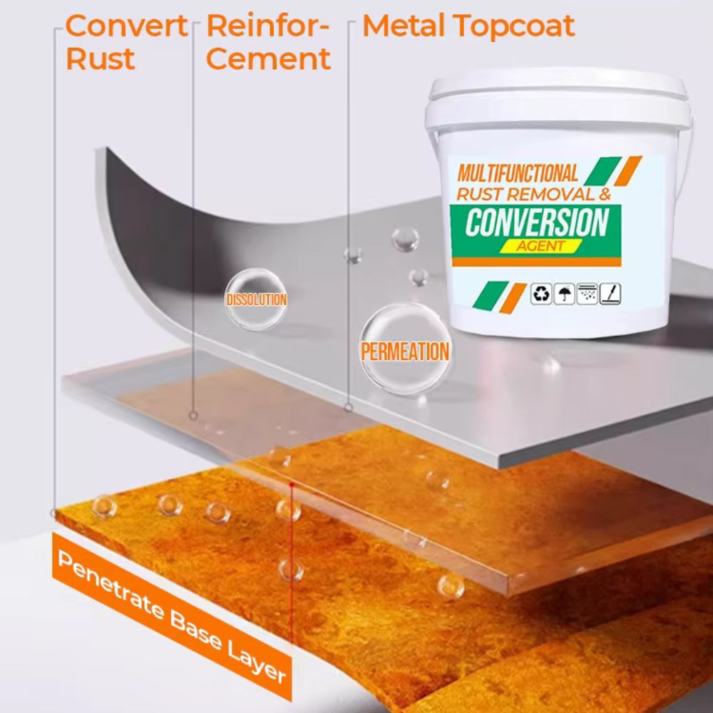 Protection efficace contre la rouille : convertit la rouille en une couche protectrice stable et empêche une oxydation supplémentaire.