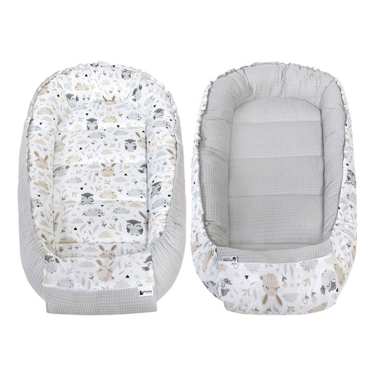 Medi Partners Baby-Nestchen für Neugeborene aus 100% Baumwolle (100x60x15cm): Eulen-Motiv