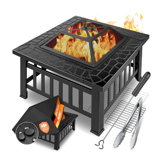 • KESSER® Feuerstelle mit Grillrost & Grillzange: Feuerschale, BBQ Grill mit Funkenschutz