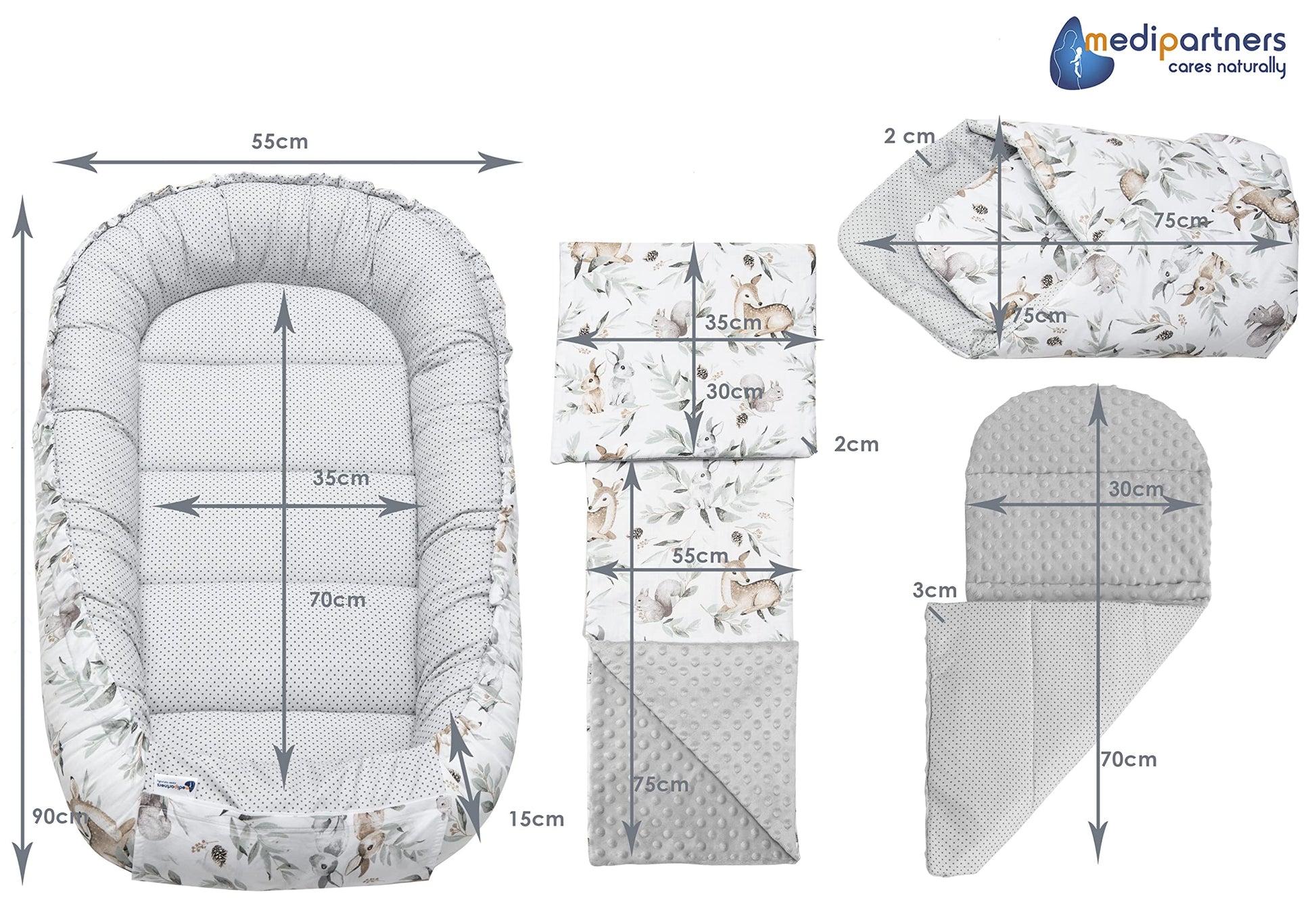 Medi Partners Baby-Nestchen für Neugeborene aus 100% Baumwolle (5-teilig - 100x60x15cm)