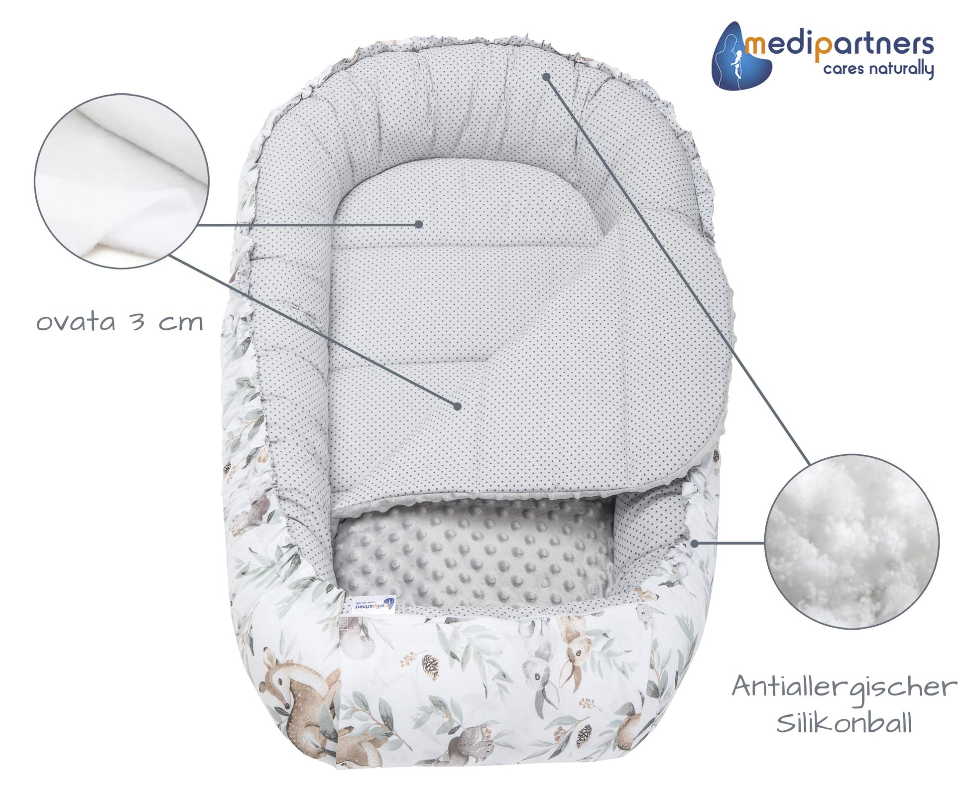 Geborgen schlafen wie im Mutterleib - das handgenähte Babynest von Medi Partners bietet Sicherheit, Komfort und Qualität „Made in EU“.