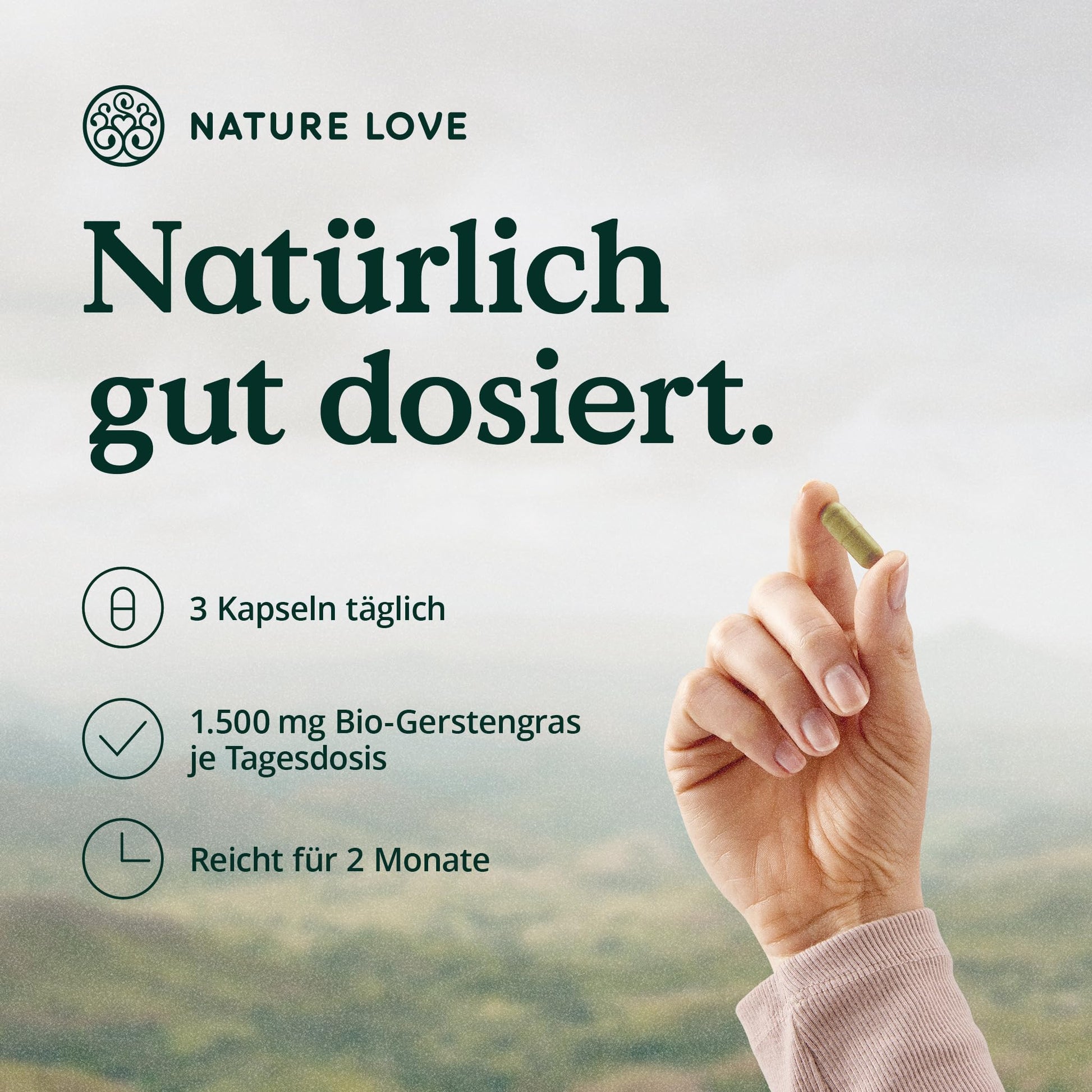 NATURE LOVE® Bio Gerstengras aus deutschem Anbau (1500mg je Tagesdosis): 180 Kapseln - Hochdosiert