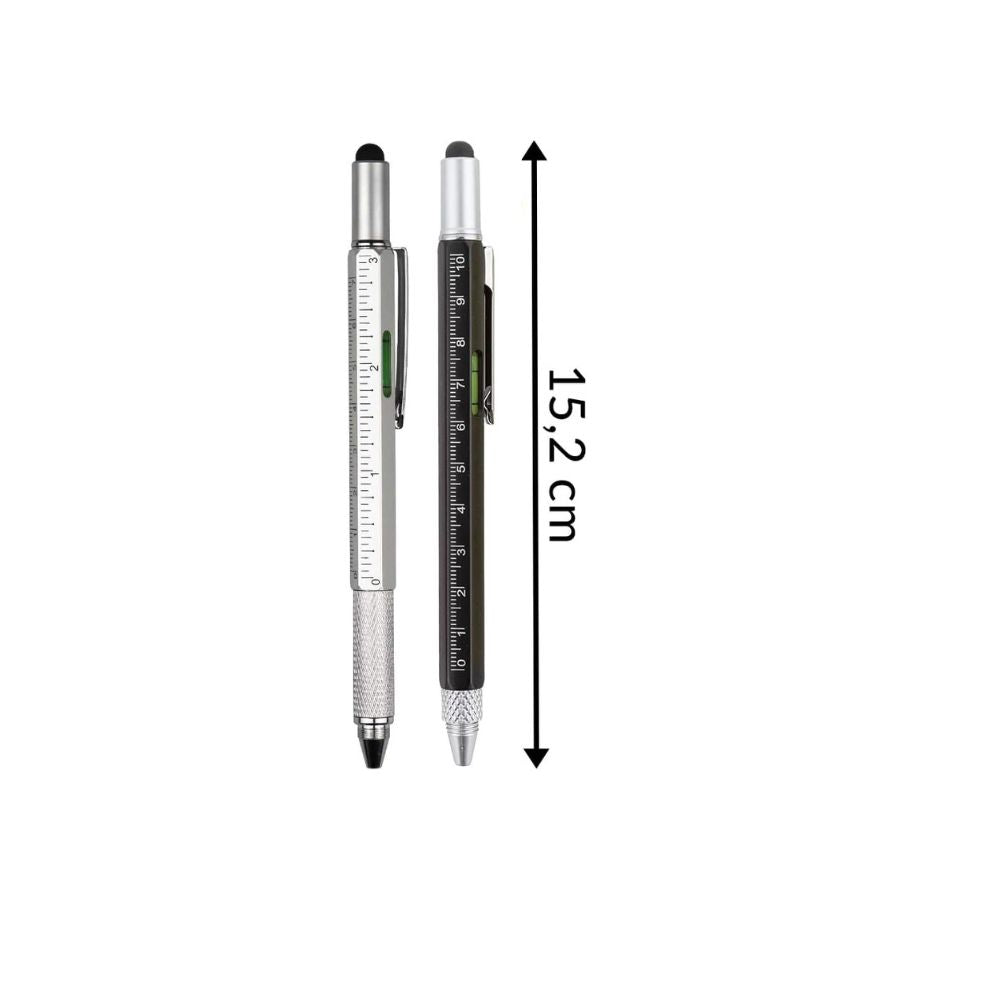 Stylo multifonction 6 en 1 : stylet tactile, tournevis (plat + cruciforme), règle, niveau à bulle, stylo à bille (GIF2)