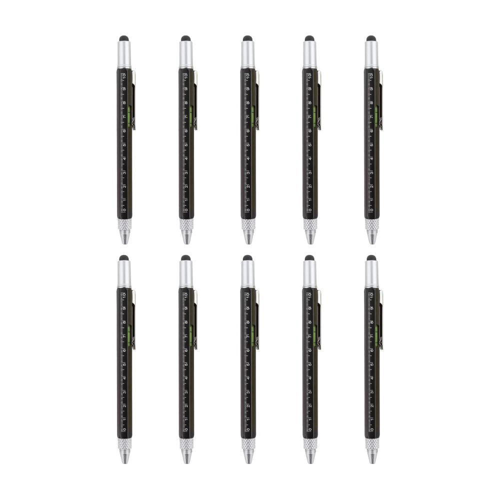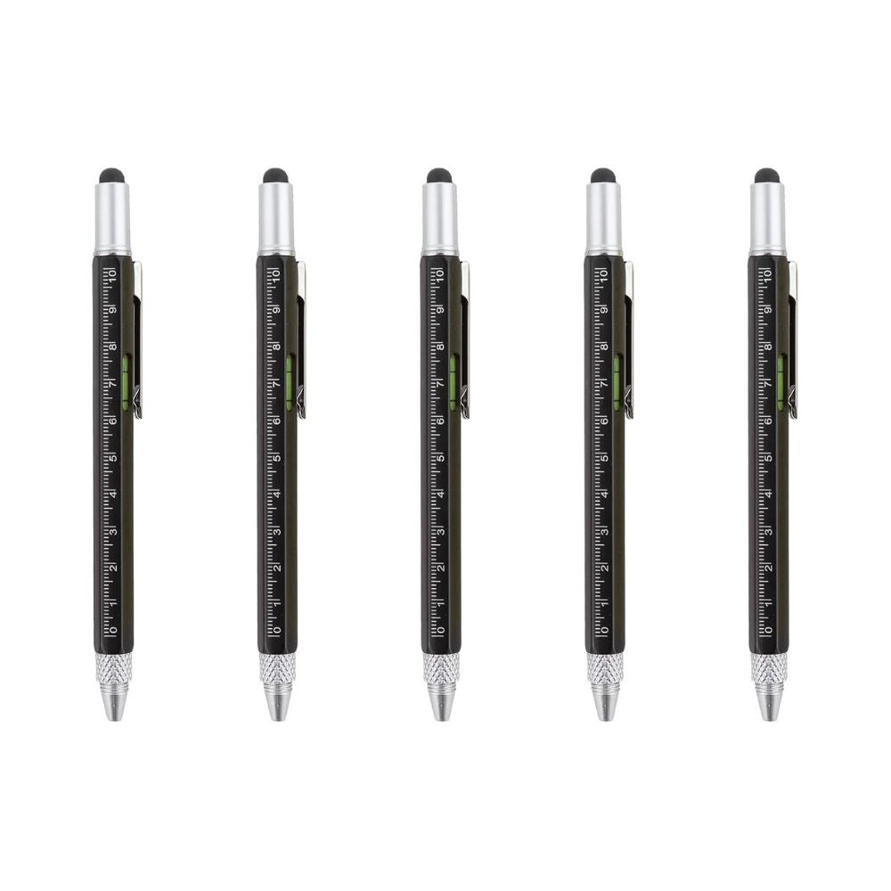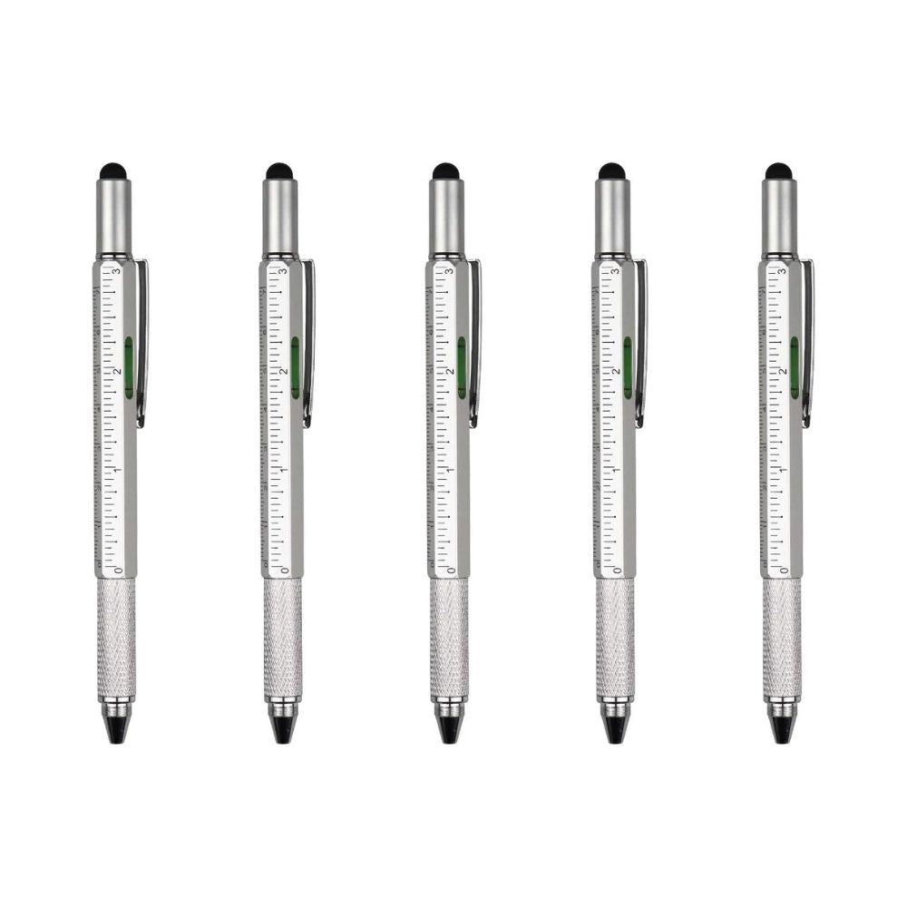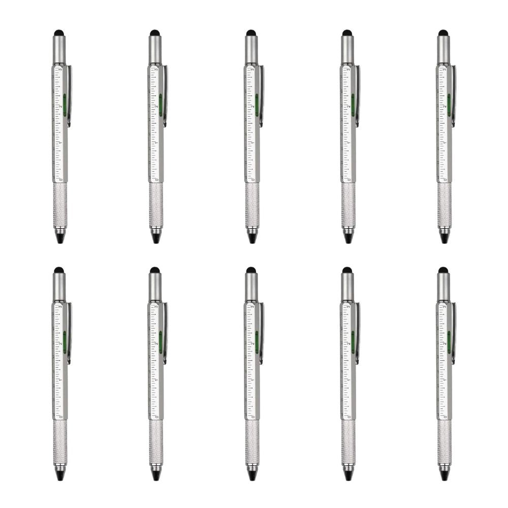 Stylo multifonction 6 en 1 : stylet tactile, tournevis (plat + cruciforme), règle, niveau à bulle, stylo à bille