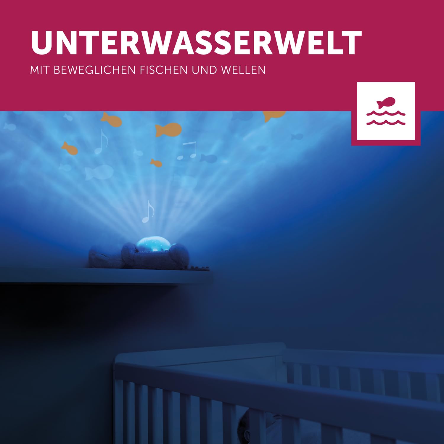 Otto der Otter LED-Nachtlichtprojektor mit Batterien: Ozean, bewegliche Fische, Wellen